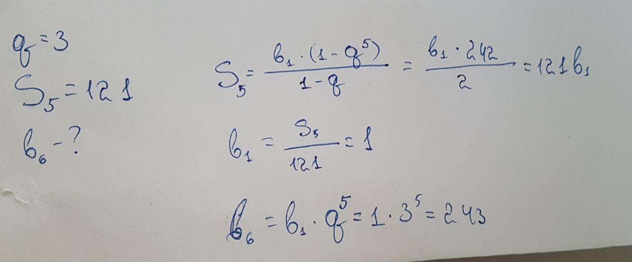 Знаменник геометричної прогресії дорівнює 3, а сума п'яти перших членів — 121. Знайдіть шостий член цієї прогресії.