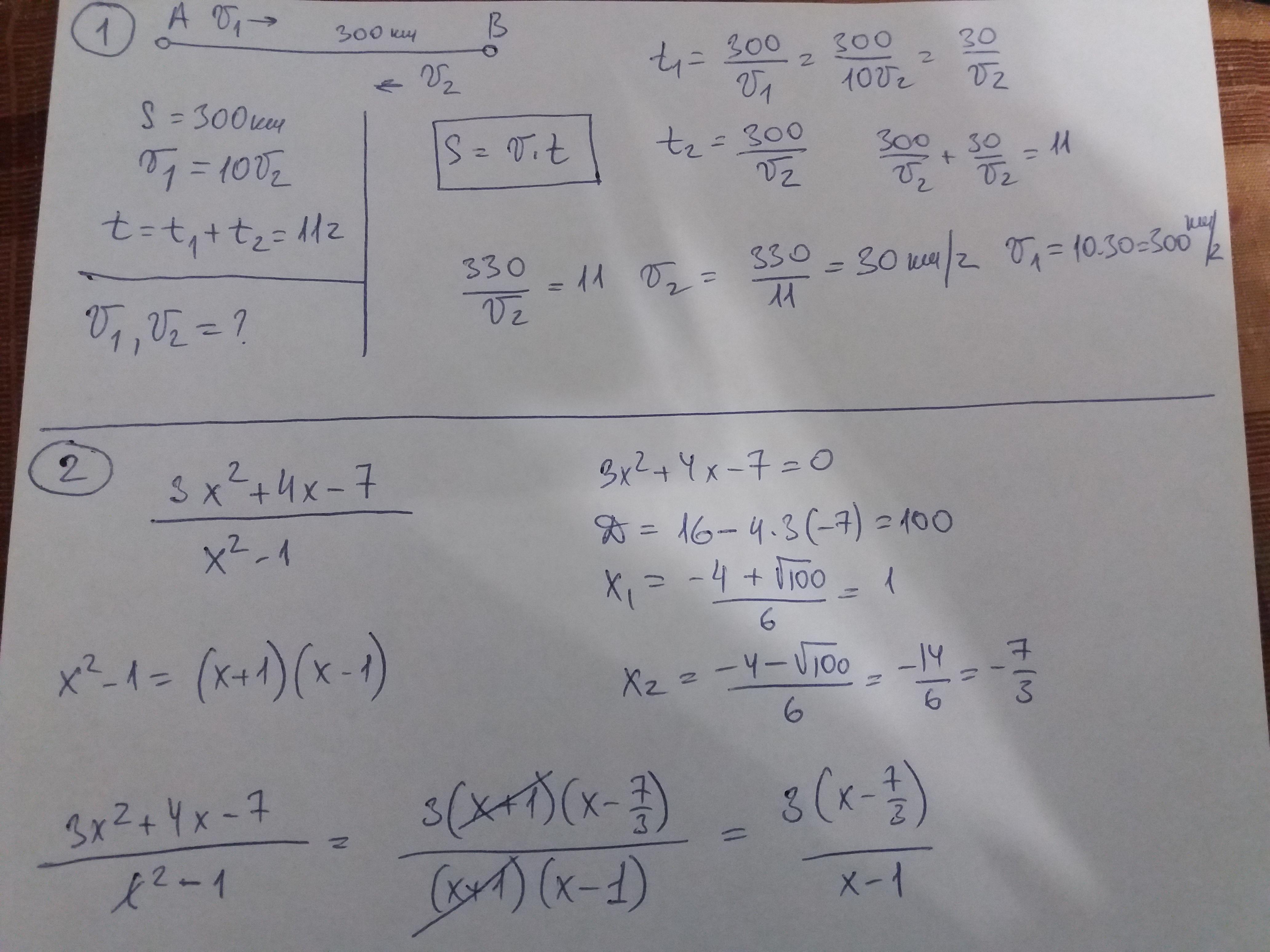 1) От пункта А до пункта В, расстояние между которыми 300 км. машина ехала со скоростью на 10 км/ч больше, чем обратно. Найдите скорость машины на пути от А до В, если на всю поездку ( не считая стоянки в пункте В) было затрачено 11 часов.