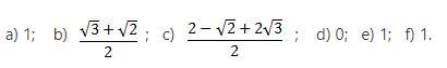 a)1 b)(корень3+корень2)/2 c)(2-корень2+2корень3)/2 d)0 e)1 f)1