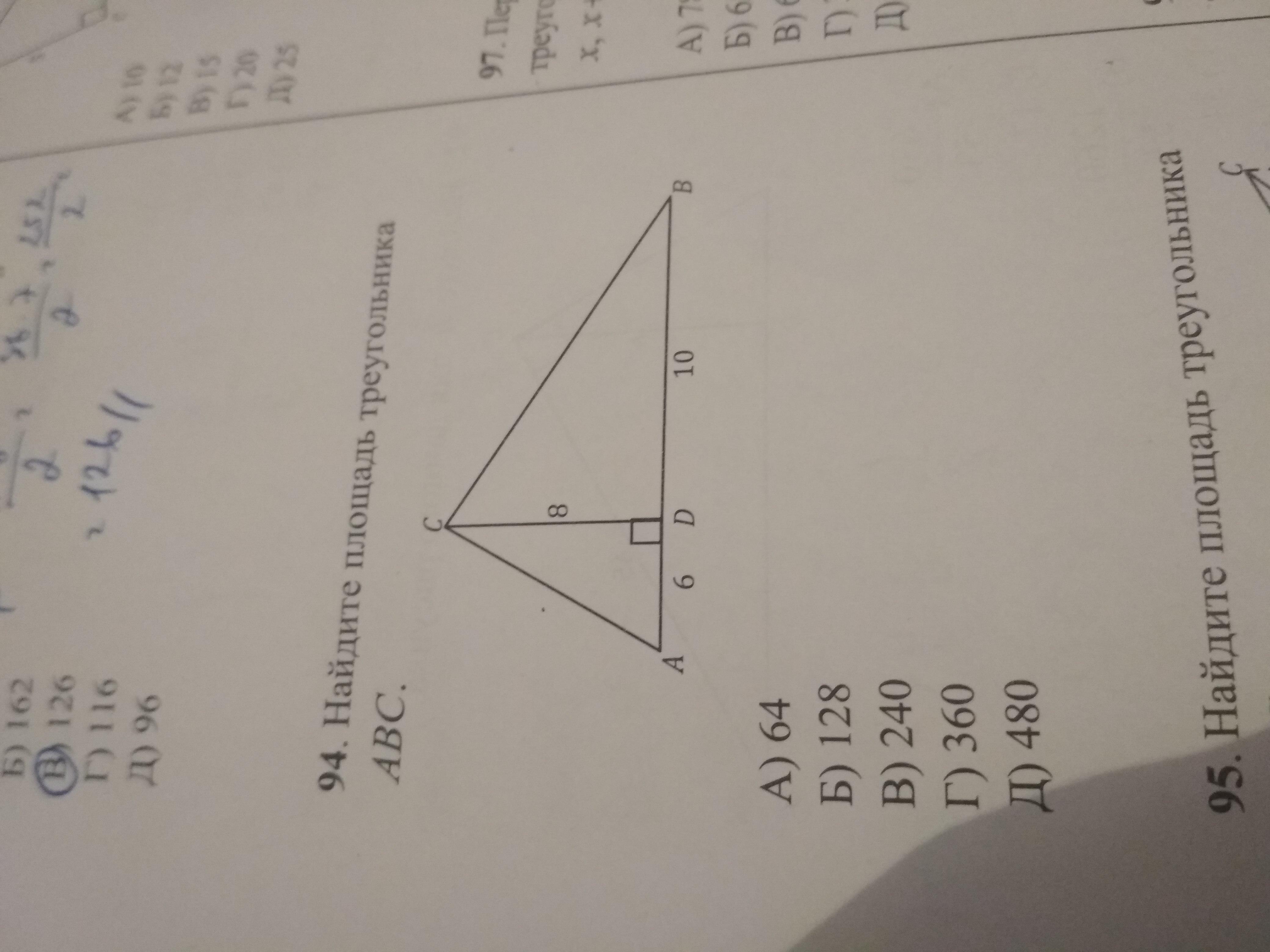 Формула S = 1/2 a*h где a это сторона на которую опущена высота h