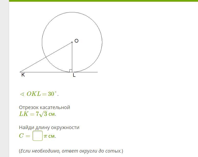 Длина окружности: C=2πr=2·OL·π=2·7·π=14π (см)