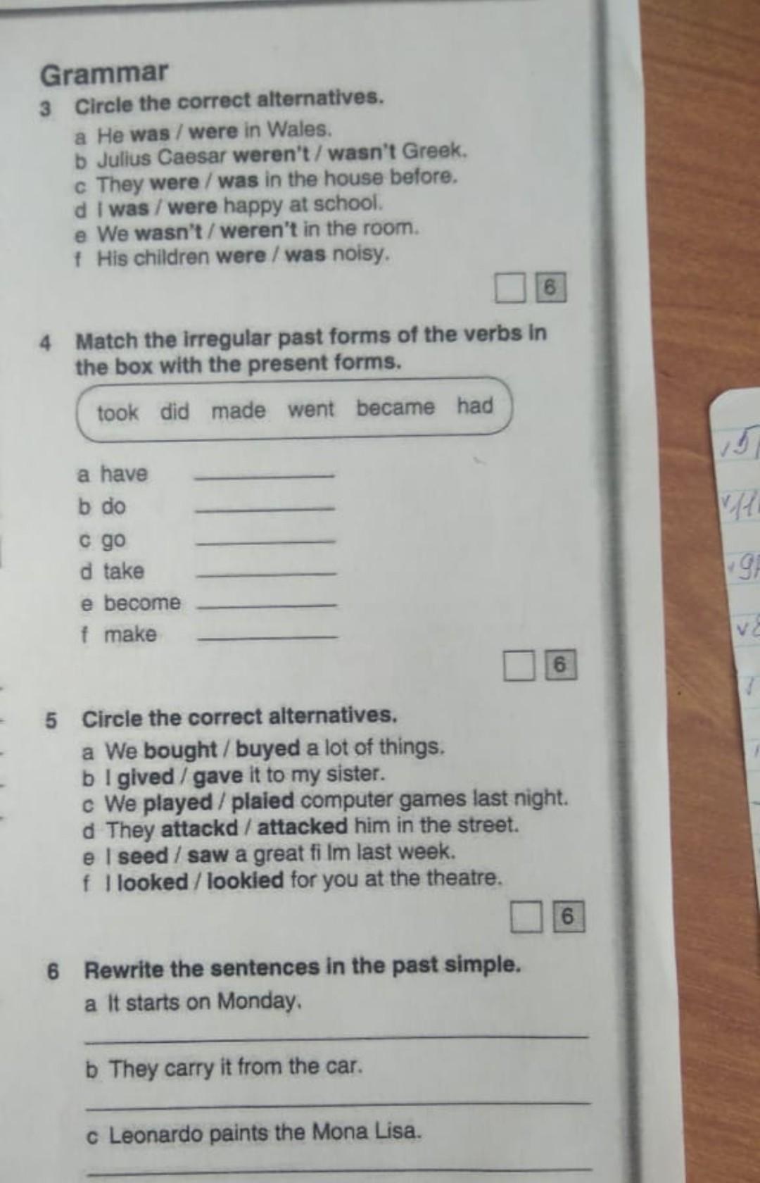 5. a)bought b)gave c)played d)attacked e)saw f)looked