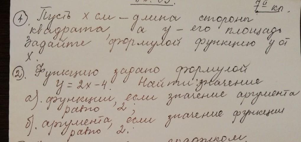 1.площадь квадрата это квадрат его стороны значит можно записать так y=x^2