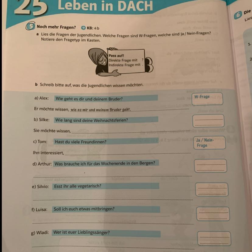 Синим цветом в задании даны direkte Fragen (они начаты или с вопросительного слова или с глагола)