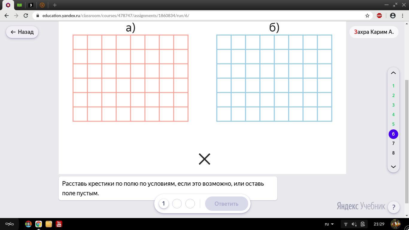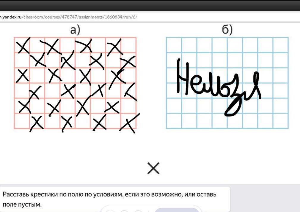 Можно ли поставить в клетки крестики так, чтобы: