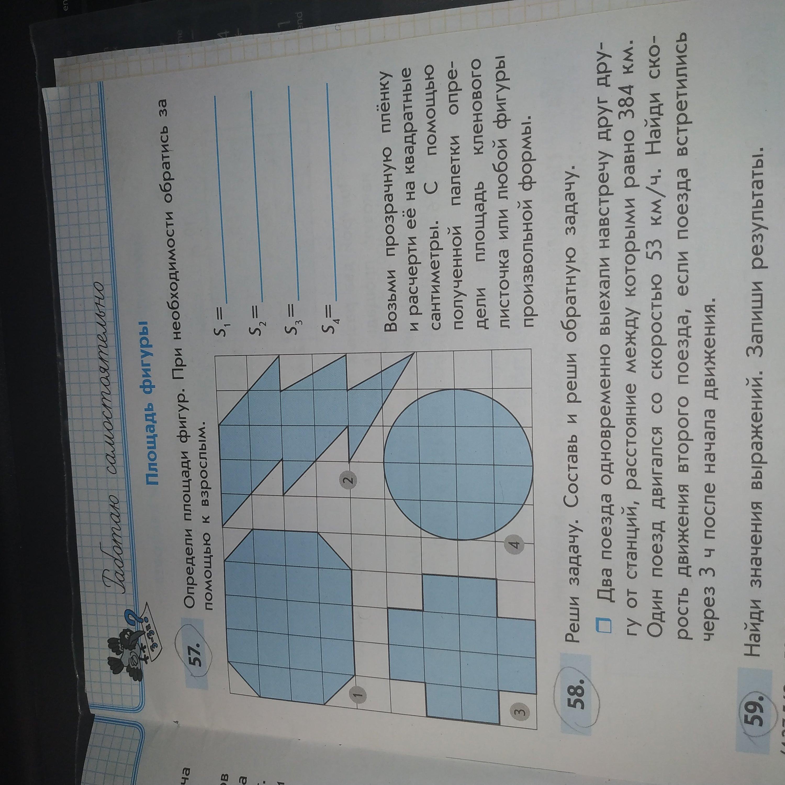 58. За 3 часа первый поезд проехал: s=v*t S=53*3=159 км
