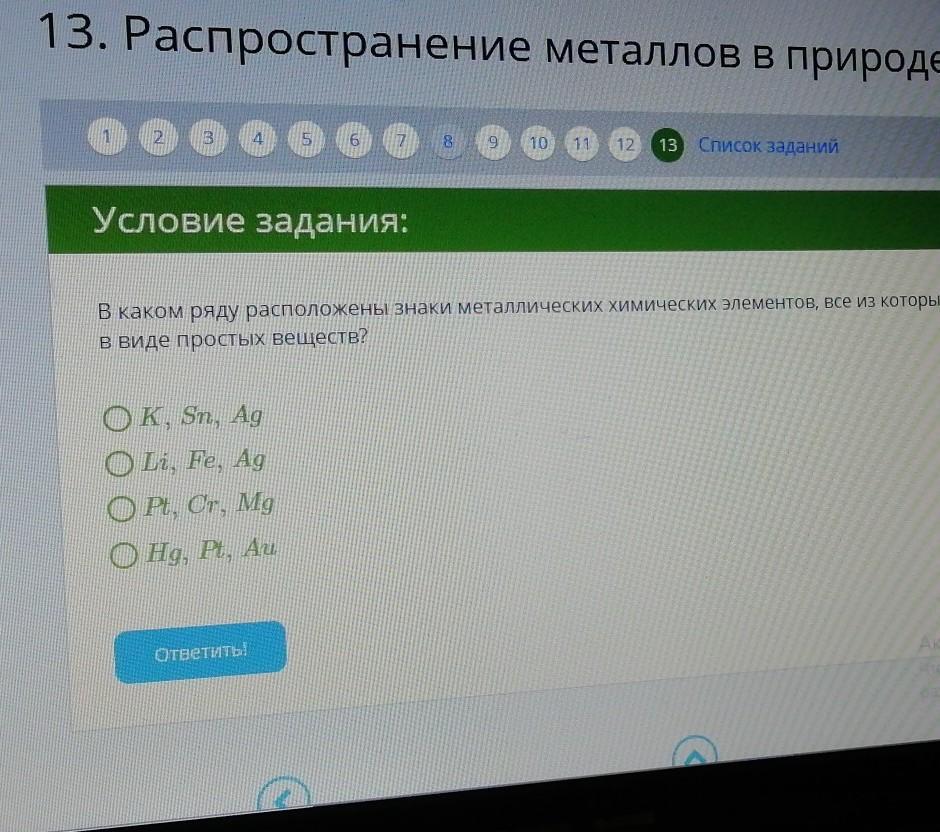 В последнем ряду, хотя встретить ртуть в самородном виде достаточно сложно