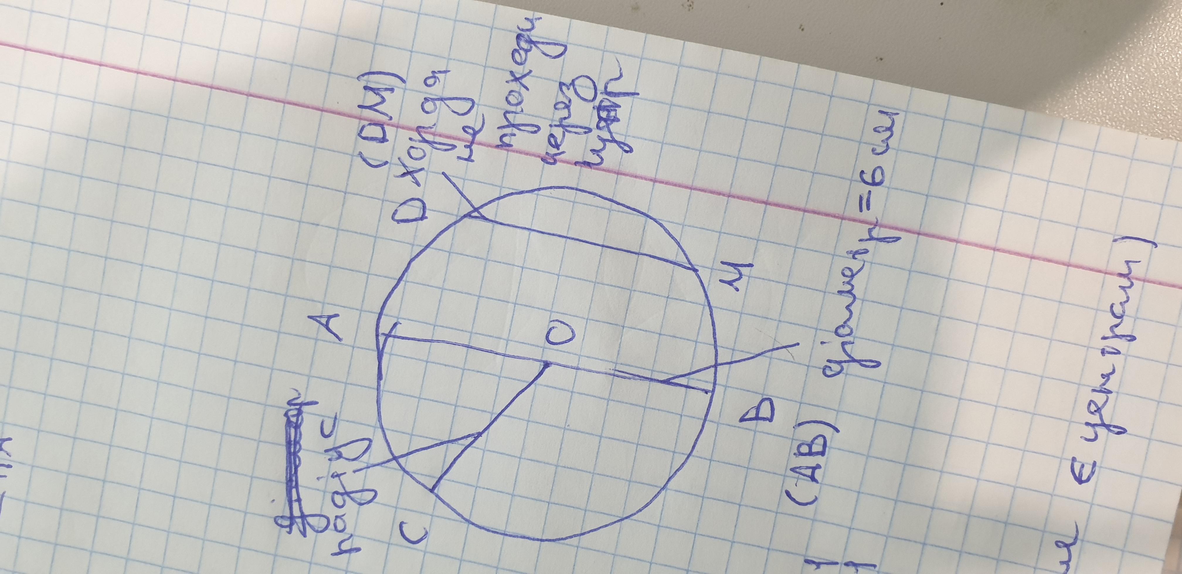 А) СО - радиус, АВ - диаметр, DM-хорда