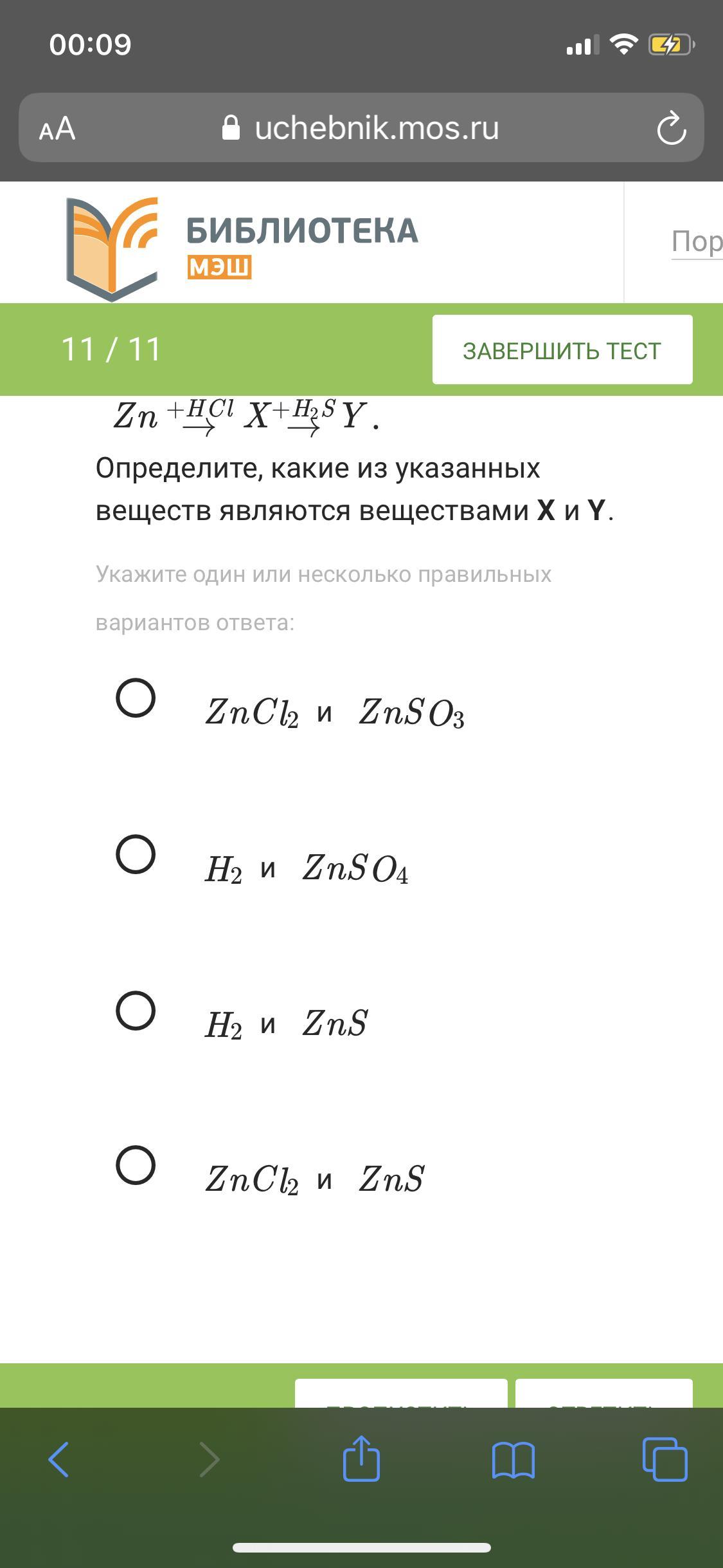 Ответ: ZnCl2 и ZnS