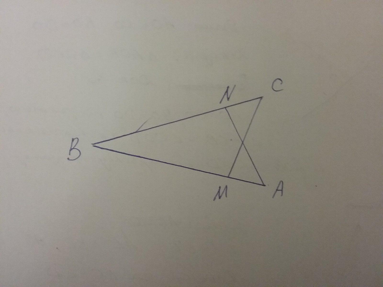 треугольник BCM=треугольнику BAN(за двома кутами і стороною)