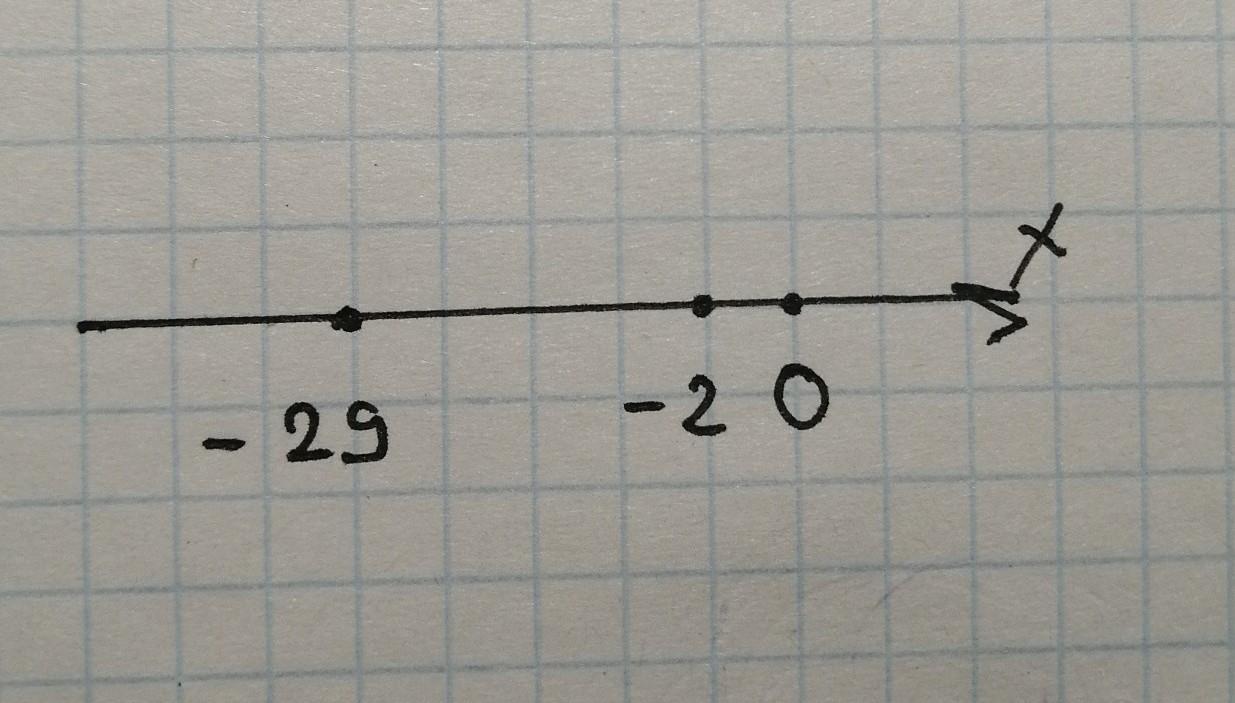 На координатной прямой число −2 от числа −29 находится...