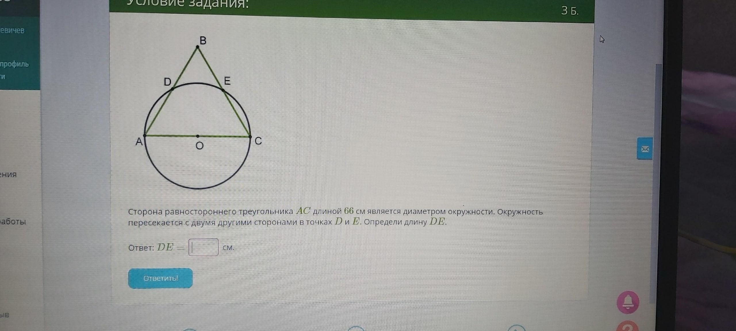 Ответ: DE=OA=66/2=33