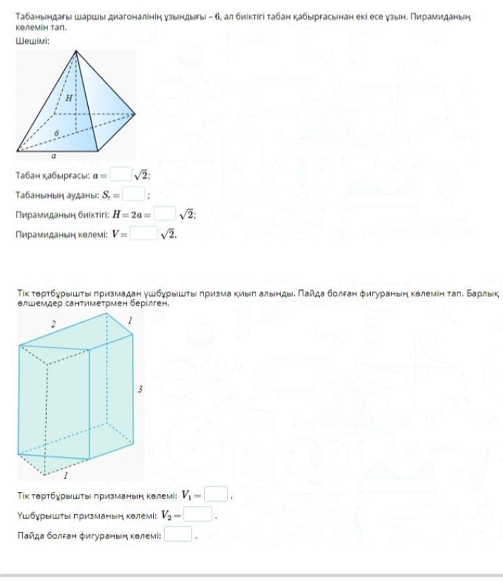 V1=6 , S=1/2 ×а×b= 1/2 ×1×1=1/2 мұнда а=b=1 катеттер