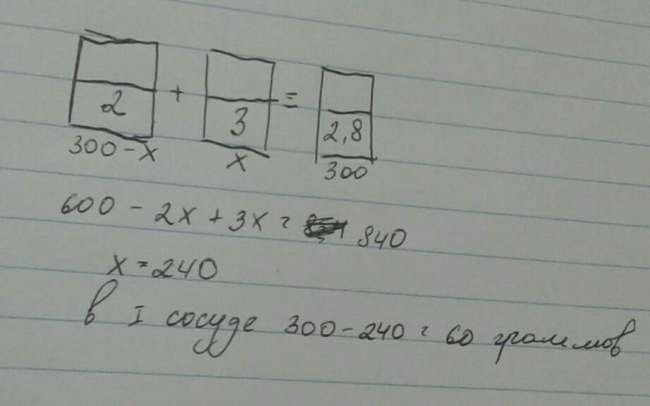 и из второго сосуда раствора, содержащего 3 % соли, получили 300