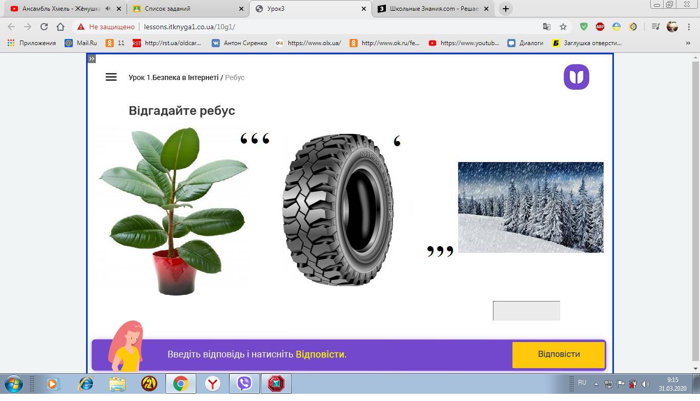 На первой фотографии изображено растение под названием фiкус, на второй - шина, а на третьей - снiг.