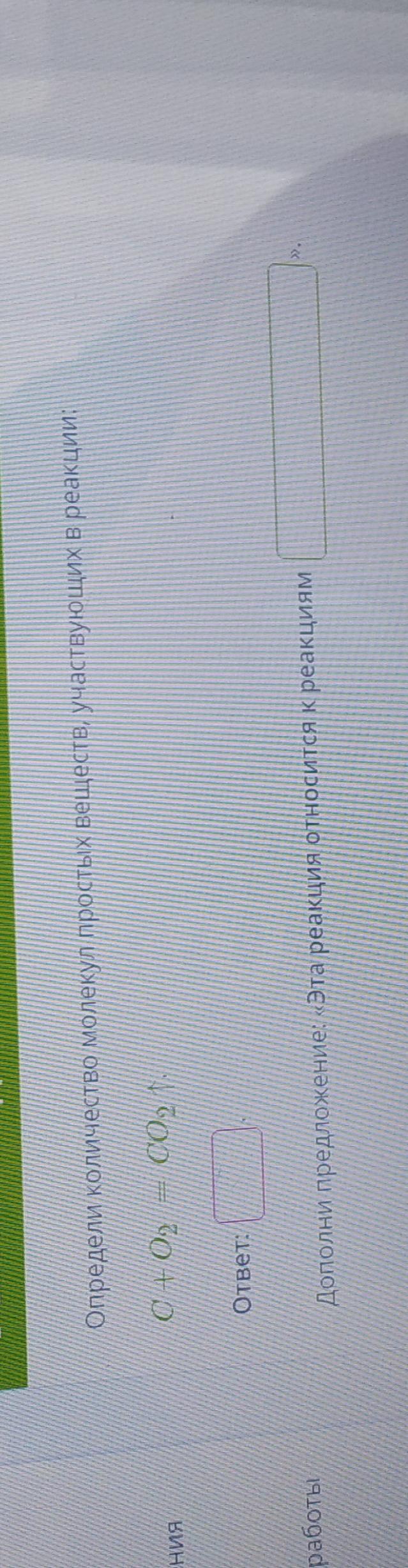 Определи количество молекул простых веществ,участвующих в реакции C+O2=CO2(стрелка вверх)
