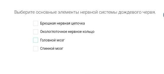 Дождевой червь относится к типу кольчатых червей, а соответственно тогда главными элементами его нервной системы являются окологлоточное нервное кольцо и брюшная нервная цепочка (ответы 1 и 2).