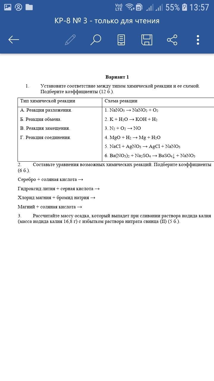 3) 2KI + Pb(NO3)2 = PbI2 + 2KNO3