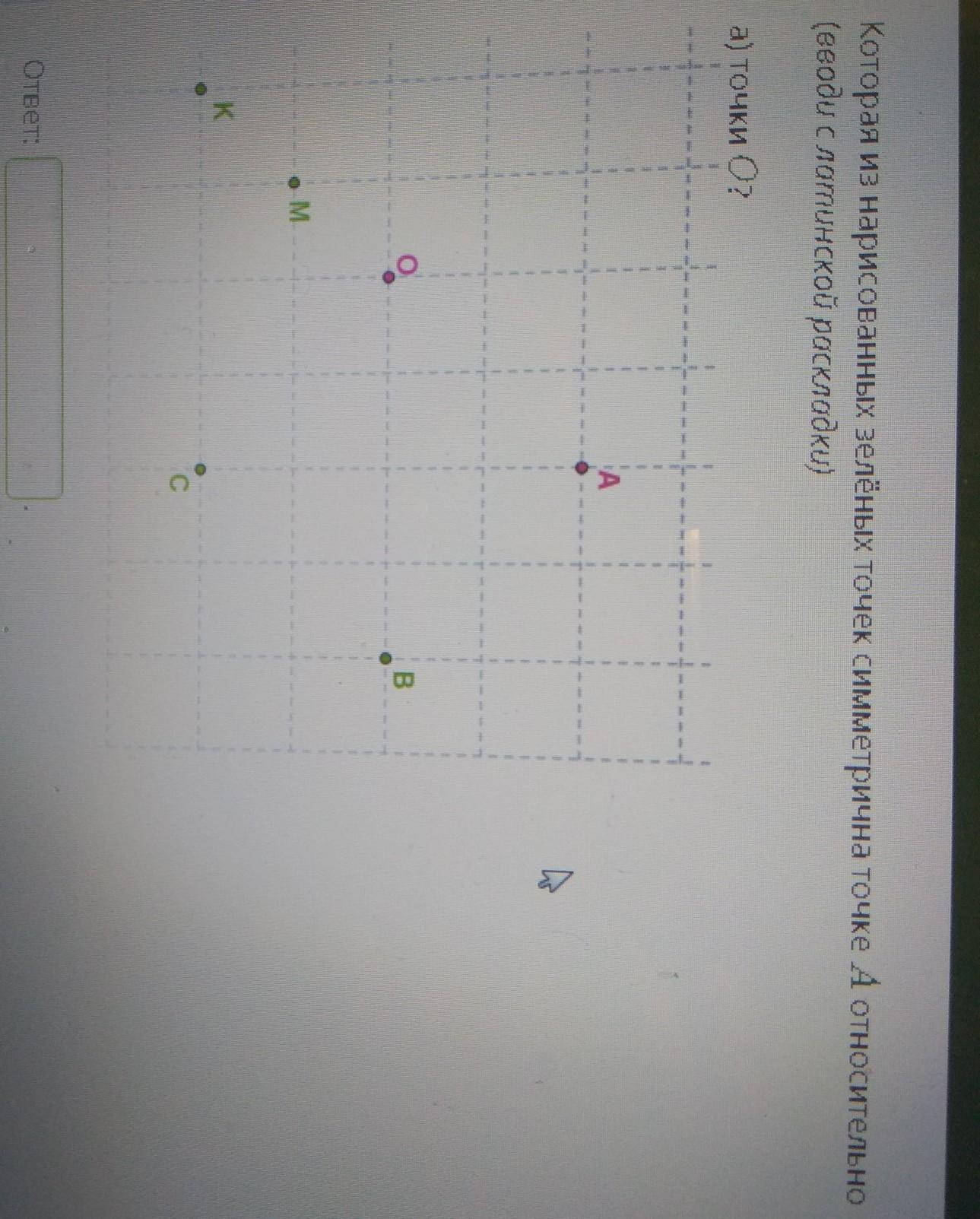 Относительно точки О точкой, симметричной точке А будет точка К.