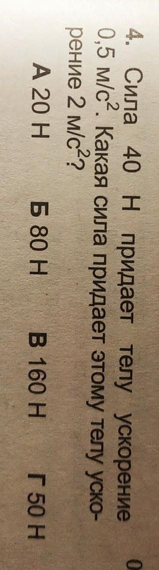 => F2 = a2 * m = 80 кг * 2 м/c^2 = 160 н