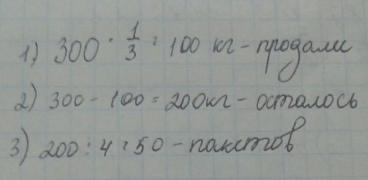 200 кг ÷ 4 = 50 ( пакетиков по 4 кг)