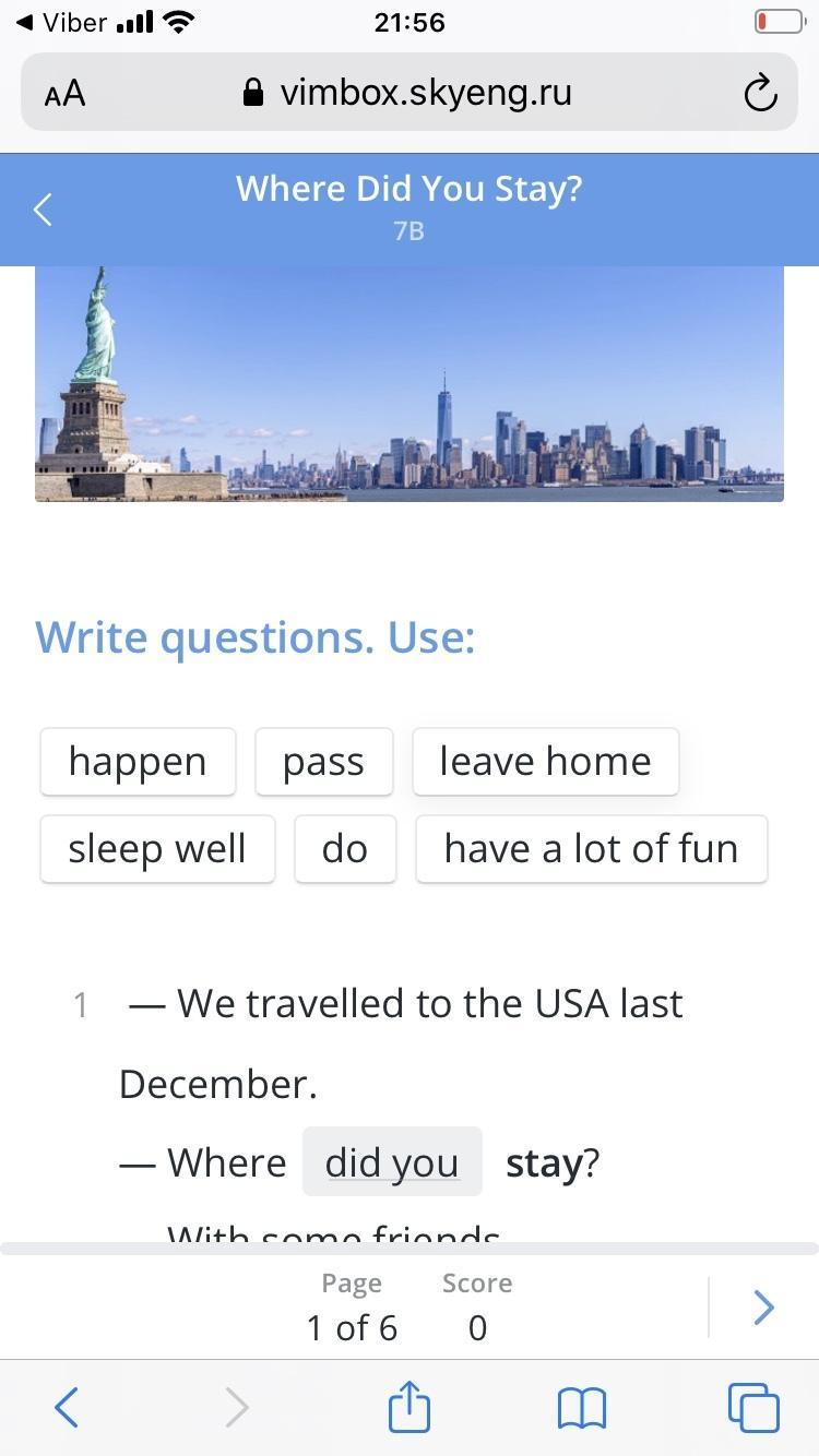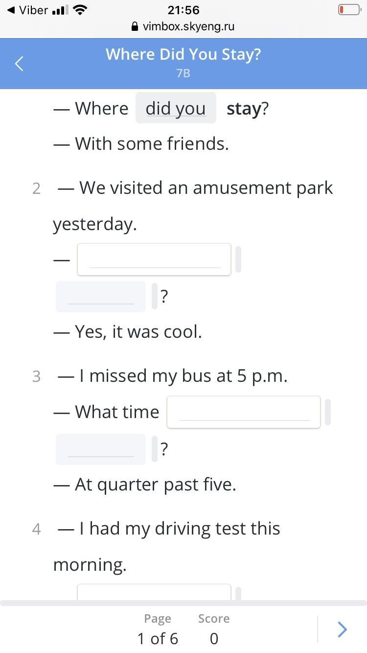 Where did you stay? - With some friends. 2 - We visited an amusement park yesterday have a lot of fun.