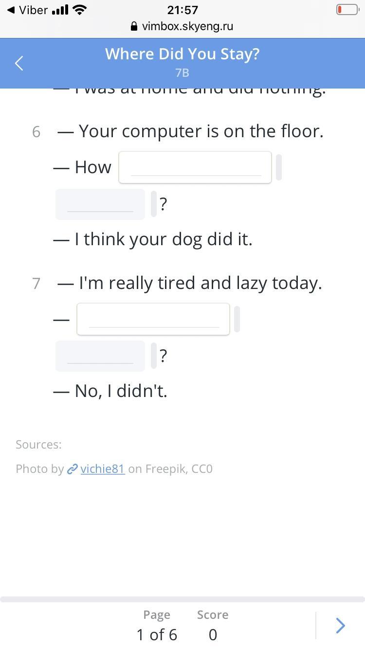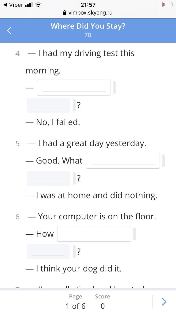 I was at home and did nothing. 6. Your computer is on the floor. - How have a lot of fun