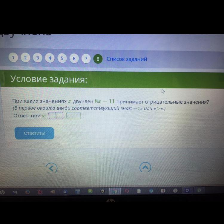 Из условия следует, что 8х-11<0 ⇒ 8x<11 ⇒ x<11/8 или x<1,375