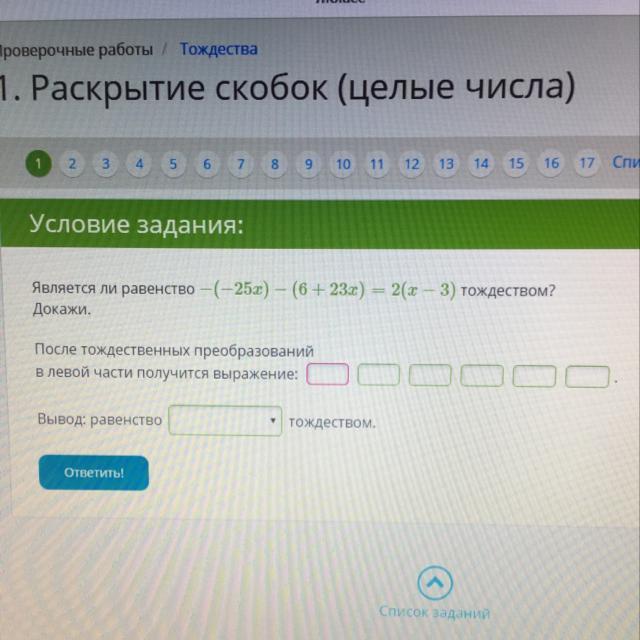 - (-25x)-(6+23x)=25x-6-23x=2x-6=2(x-3), т.е. левая и правая части тождественно равны