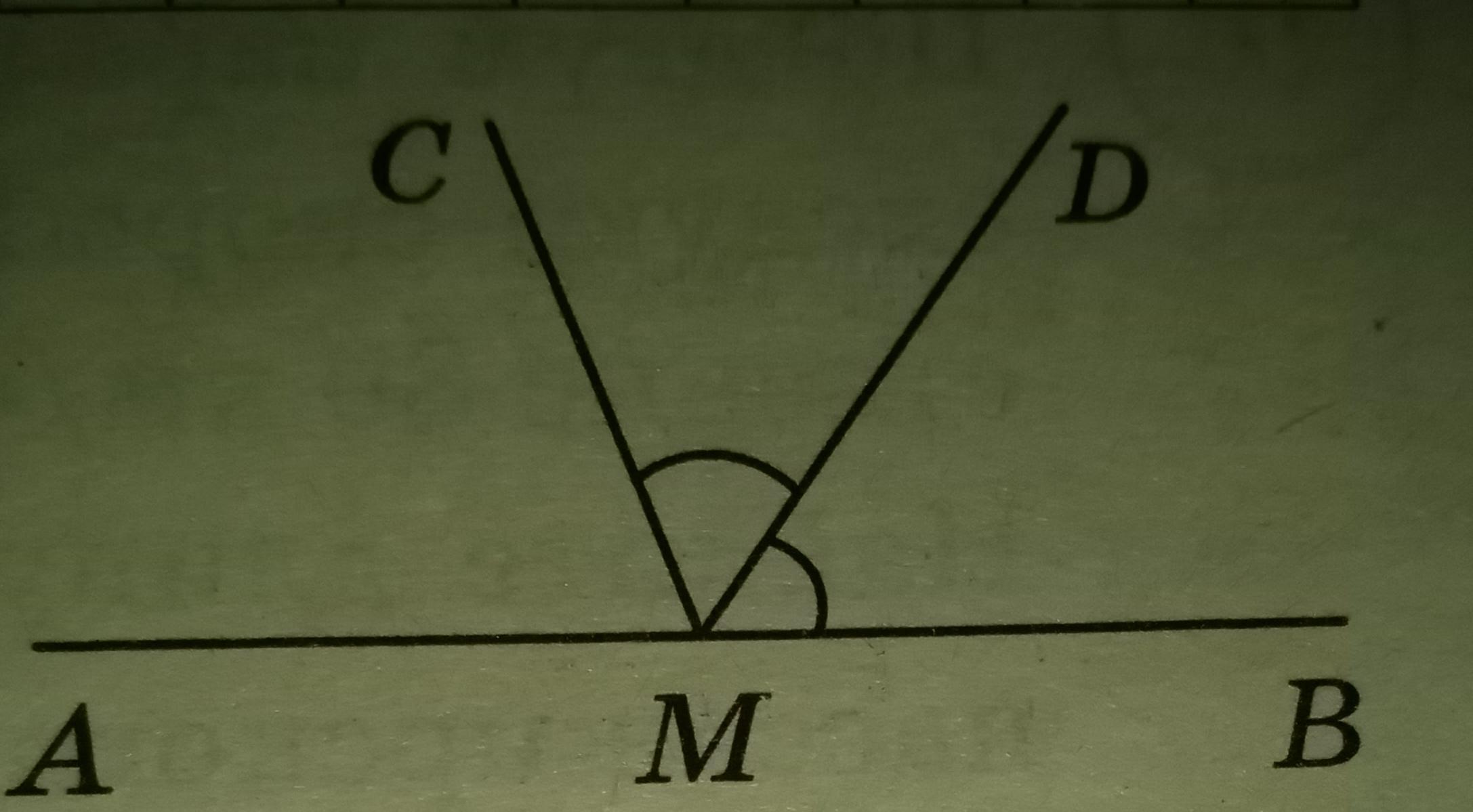 На прямой AB отмечена точка M. Луч MD - биссектриса угла CMB. Известно, что угол CMA=46 градусов. Найдите угол DMB.
