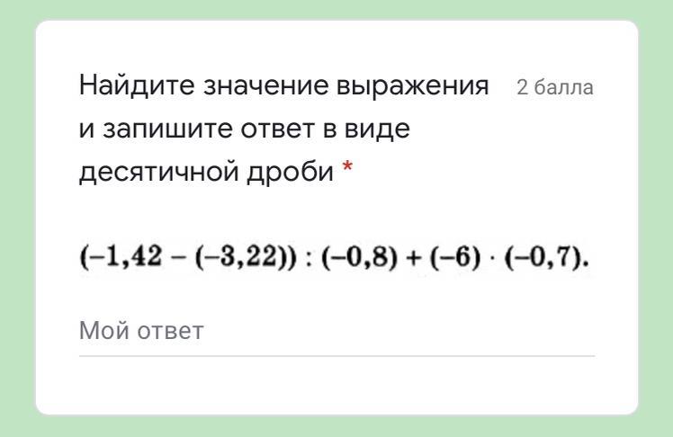 (-1,42-(-3,22)):(-0,8)+(-6)*(-0,7)= 1,95