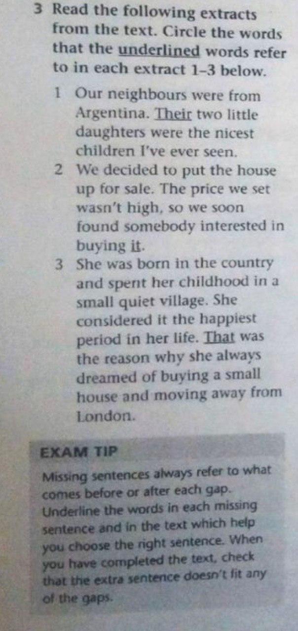 Read the following extracts from the text.Circle the words that the underlined words refer to in each extract 1-3 below. HELP HELP HELP(((