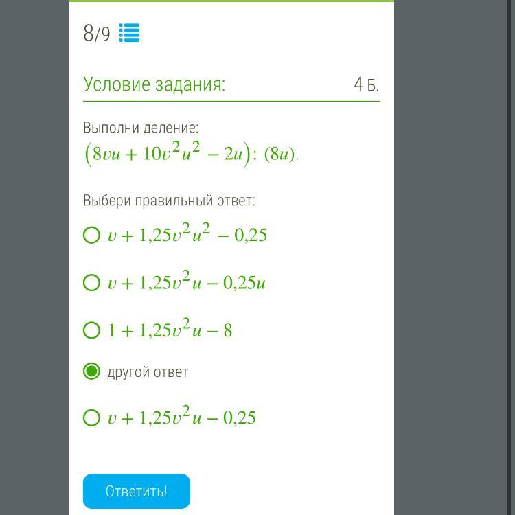 последний ответ v+1.25v^2u-0.25