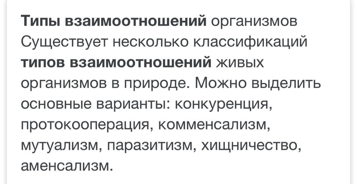 1) протокооперация . 2) мутуализм . 3) комменсализм. 4)конкуренция . 5) мутуализм