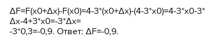 Знайдіть приріст функції f у точці x0, якщо f(x)=4-3x, x0=1, "дельта"x=0.3