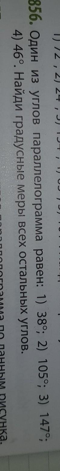 1) Если один угол равен 38 градусов, то противоположенный тоже 38. По теореме сумма углов равна 360 градусов, значит 360 -(38*2)=284, это два оставшихся угла вместе. Теперь разделим 284 на 2 = 142, значит все остальные по 142 градуса. Ты просто подставь остальные числа в формулу.
