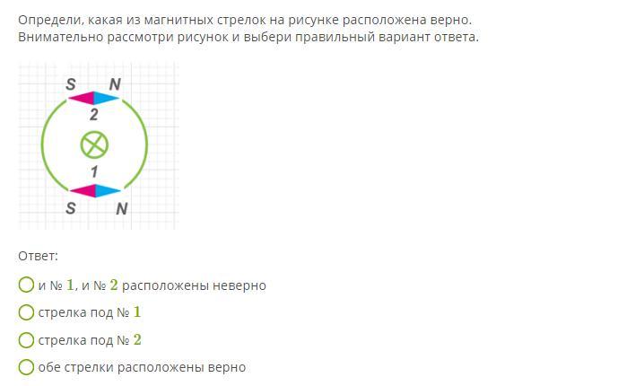 Определи, какая из магнитных стрелок на рисунке расположена верно.