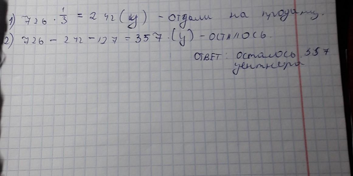 Решите задачу: С посевной площади фермерского хозяйства было собрано 726 ц пшеницы.