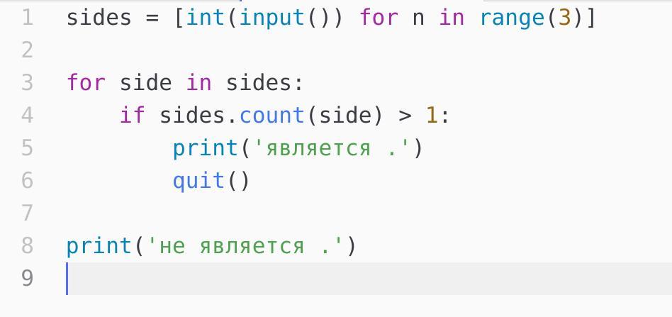 Дано три сторони трикутника. Розробіть програму для визначення, чи є цей трикутник рівнобедреним. В программе Python