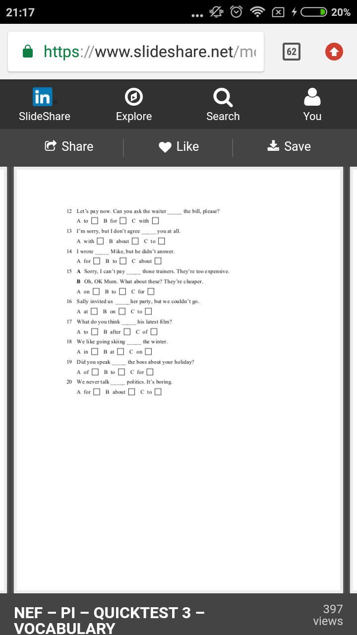 15 A Sorry, I can’t pay _____ those trainers. They’re too expensive.
