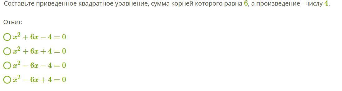 Это можно сделать по теореме Виета, верным оказывается последний ответ, т.е. х²-6х+4=0, где сумма корней равна второму коэффициенту, взятому с противоположным знаком, т.е. -6, а произведение - с тем же, т.е. 4