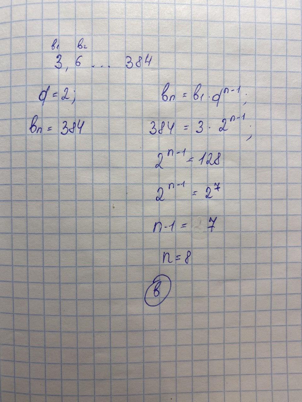 Під яким номером у геометричній прогресії 3,6... міститься число 384?