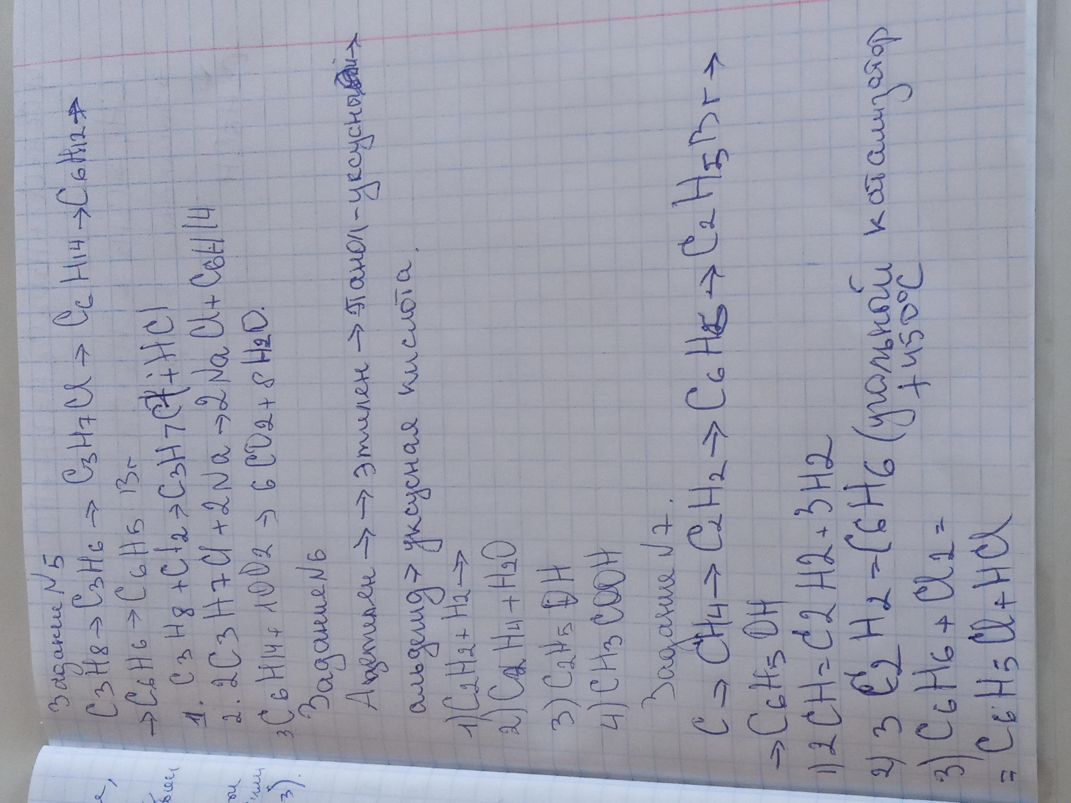 Задание № 5. С3Н8→С3Н6→С3Н7СI→С6Н14→C6Н12→С6Н6 → С6Н5Вr.