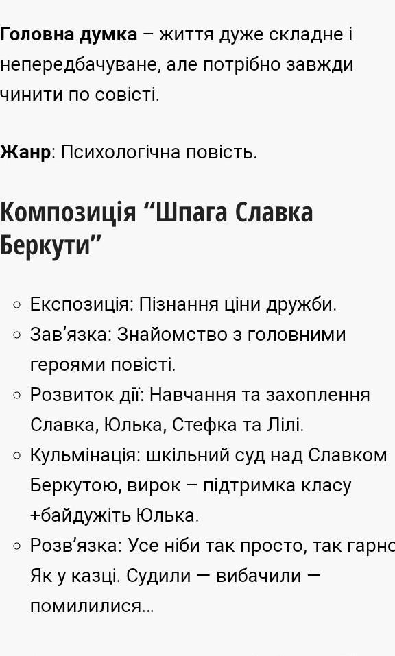 записати елементи cюжету Шпага Славака Беркути (експозиція, зав'язка, розвиток дії, кульмінація, розв'язка)
