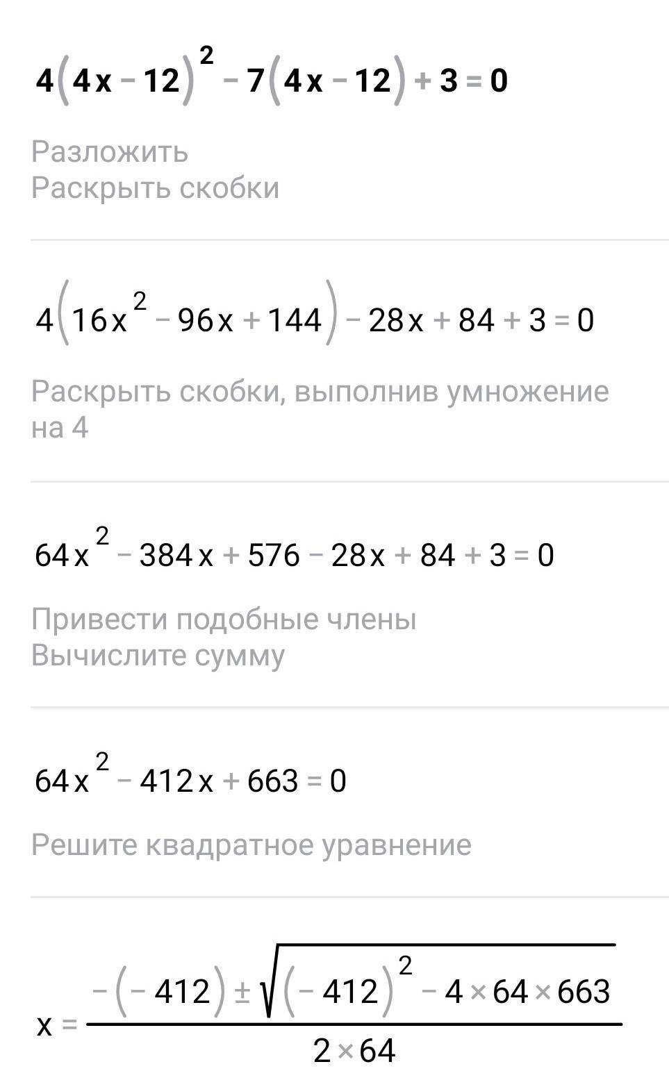 4 (4х - 12)² - 7 (4х - 12) + 3 = 0