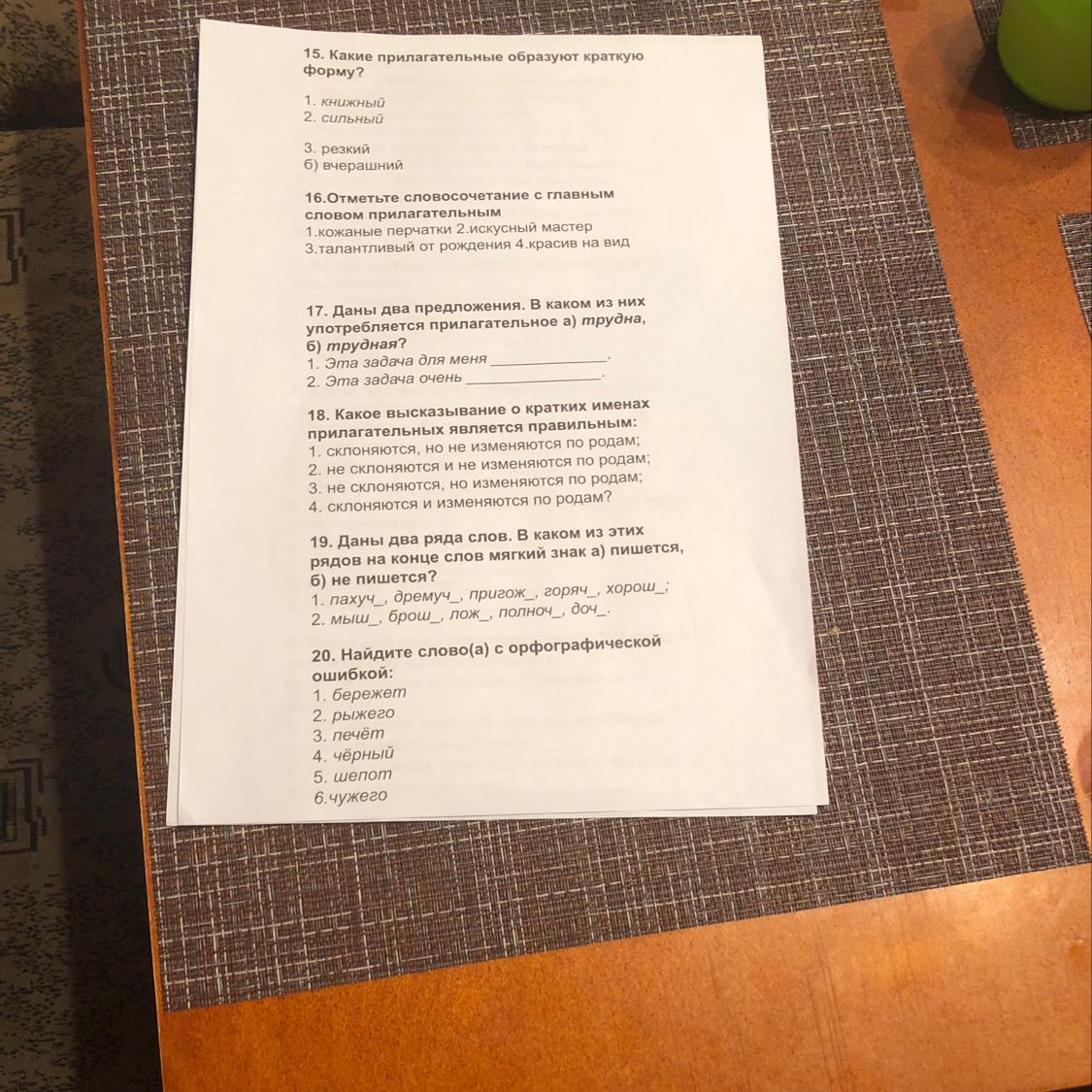 18. 1 ряд: не пишется