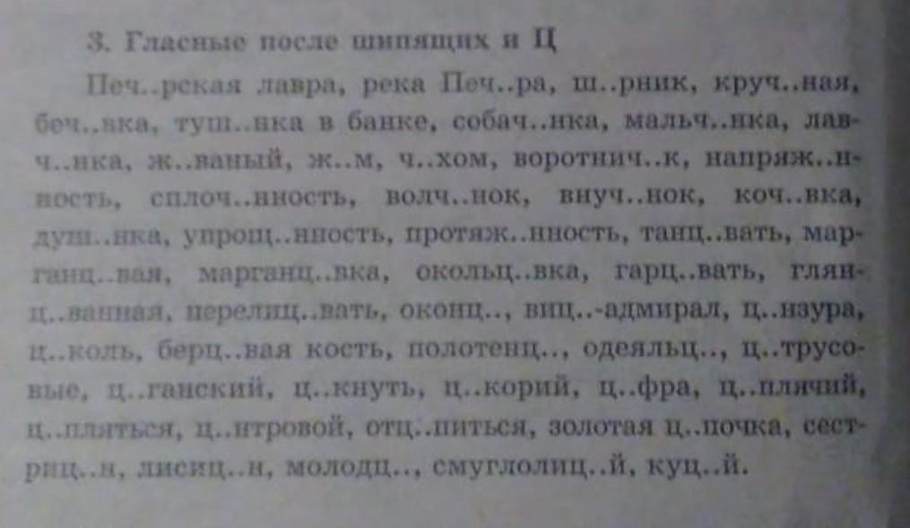Печерская лавра, река Печора, шорник, крученая, бечёвка, тушёнка в банке, собачонка, мальчонка, лавчонка, жеваный, жом, чохом, воротничок, напряженность, сплочённость, волчонок, внучонок, кочёвка, душонка, упрощенность, протяженность, танцевать, марганцовая, марганцовка, окольцовка, гарцевать, глянцованная, перелицевать, оконце, вице-адмирал, цензура, цоколь, берцовая кость, полотенце, одеяльце, цитрусовые, цыганский, цыкнуть, цикорий, цифра, цыплячий, цепляться, центровой, отцепиться, золотая цепочка, сестрицын, лисицын, молодце, смуглолицый, куцей.