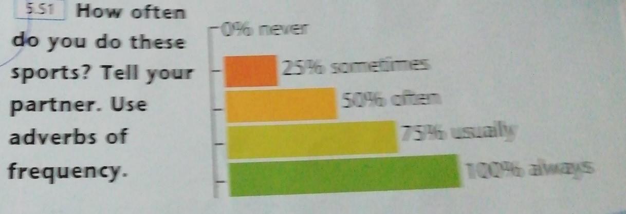 помогите пж. How often do you these sports?Tell your partner.Use adverbs of frequency.