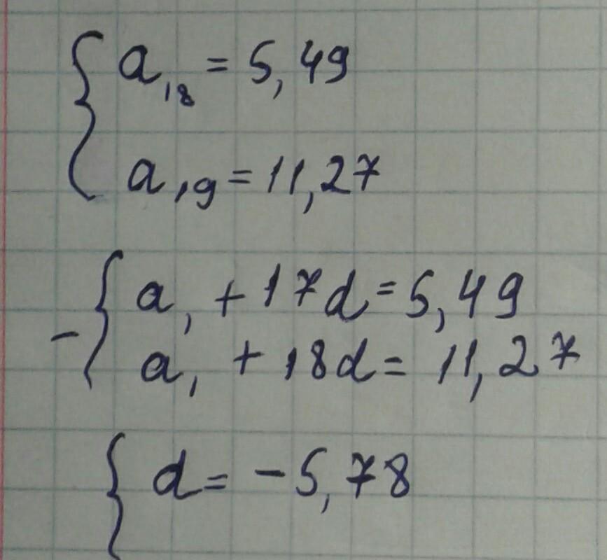 d = a19 - a18 (ищем разницу соседних членов) = 11,27 - 5,49 = 5,78