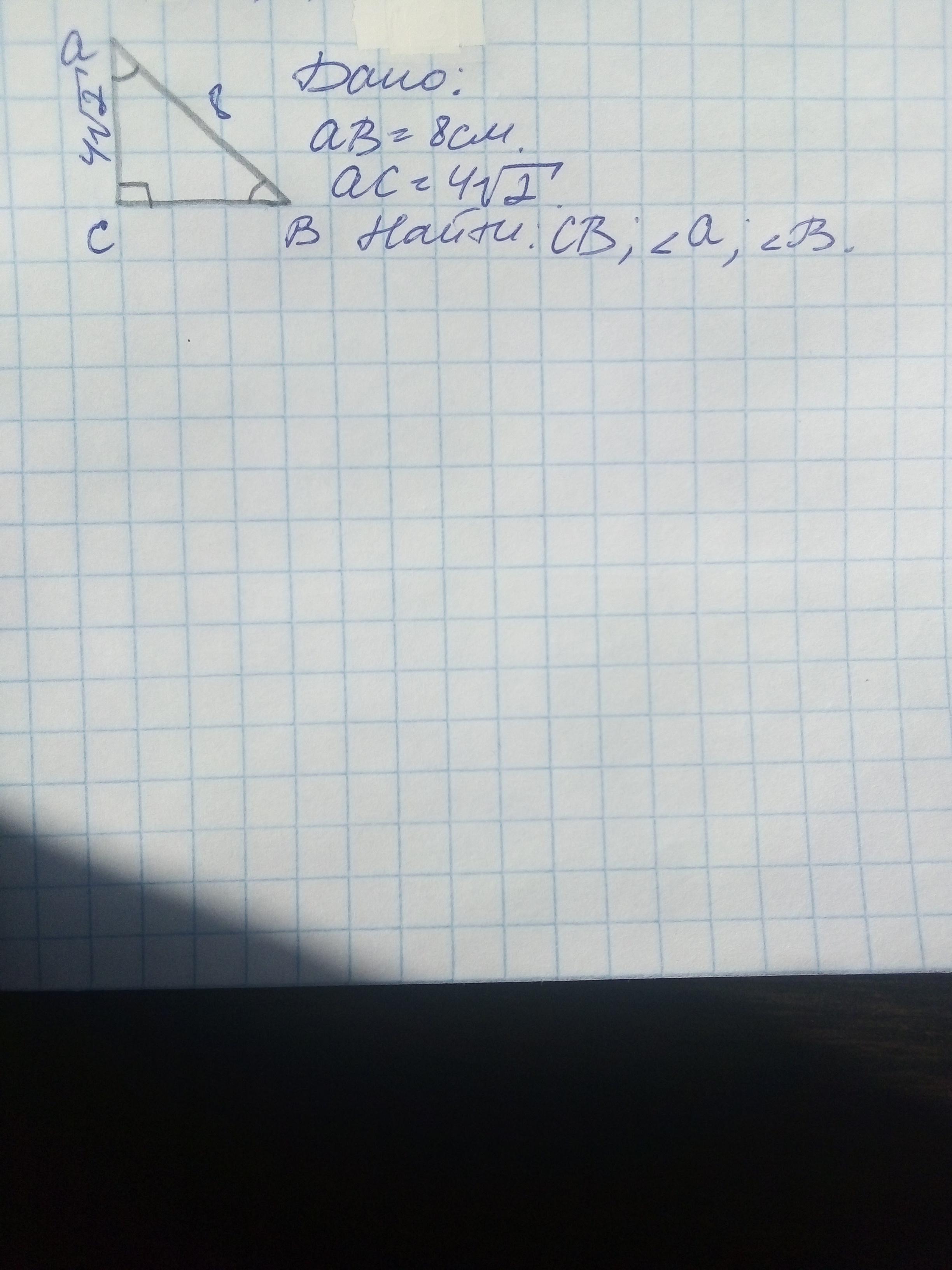 т.к. ас=cb, то треугольник равнобедренный углы равны а=b=(180°-90°):2=45°